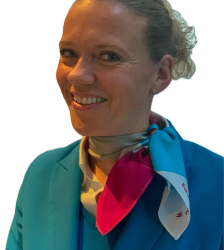 Ich bin 46 Jahre alt, seit 2017 bei der EW und seit über 23 Jahren Flugbegleiterin.